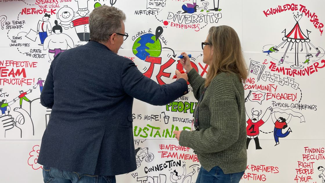 We engaged our listening power, to bring together on one space the spirit of the event and the voices of the stakeholders present. Not just individual voices becoming collective, but the voice of the community itself being condensed through the metaphor of the white paper directly in front of it. The biggest impact is just seeing so many hands shaping the same project. The discussion was held in various rooms, of which we summarized the best practices that emerged in various areas of the wall. In evidence, the importance of communication and the need for turnover: different human interactions allow for different traffic of ideas. Expanding the network and enhancing team’s motivation are all factors that foster the strengthening of human relationships that Ted wants to promote.