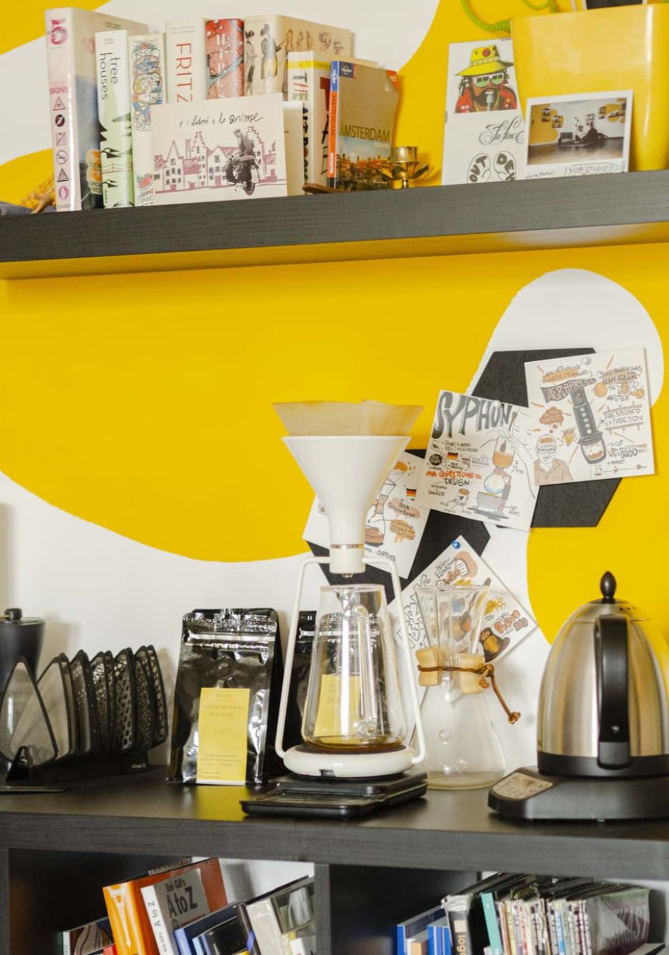 Walls, shelves and coffee machines: our studio is not what you are used to, it works like a big physical encyclopedia that we make available to your team to compare, change points of view and discover new goals.